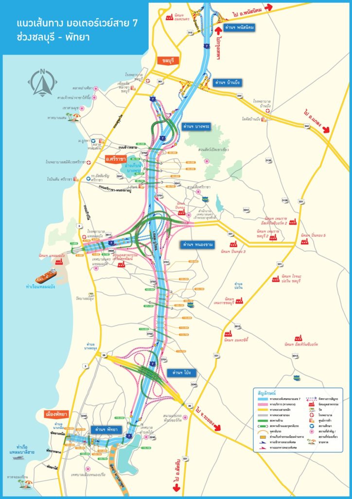 ขาเข้า ผู้ใช้ทางสามารถเข้าสูทางหลวงหมายเลข 36 ซึ่งสามารถไปเทศบาลตำบลบางละมุง รวมถึงสามารถเดินทางไป จ.ระยองได้