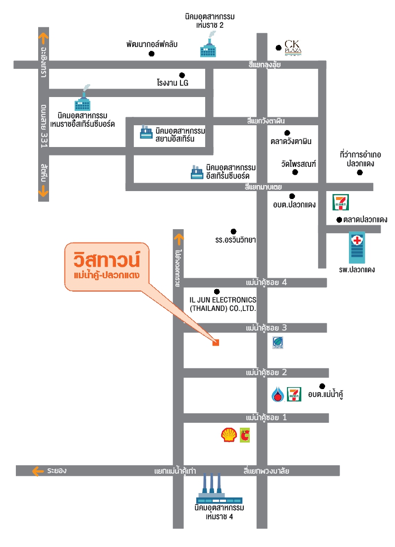 โครงการวิสทาวน์ แม่น้ำคู้ – ปลวกแดง ระยอง ตั้งอยู่บนทำเลศักยภาพ ใกล้กับนิคม เหมราช 4 การคมนาคมสะดวกสบาย สามารถเชื่อมต่อทุกการเดินทางได้อย่างหลากหลาย ด้วยถนนสายสำคัญต่าง ๆ มากมาย อาทิ ถนนทางหลวงหมายเลข36 , ถนนทางหลวงหมายเลข331 , ถนนหมายเลข3191 และถนนมอเตอร์เวย์ (ทล.7) เหนือกว่าด้วยศักยภาพการเติบโตของเศรษฐกิจที่ขยายตัว และทวีค่าขึ้นทุกวัน แวดล้อมไปด้วยสิ่งอำนวยความสะดวกและสาธารณูปโภคต่าง ๆ ที่สำคัญมากมาย อาทิ ศูนย์การค้า, โรงเรียน, โรงพยาบาล, สถานที่ราชการ, พร้อมตอบสนองไลฟ์สไตล์สำหรับทุกคนในครอบครัวได้อย่างลงตัว