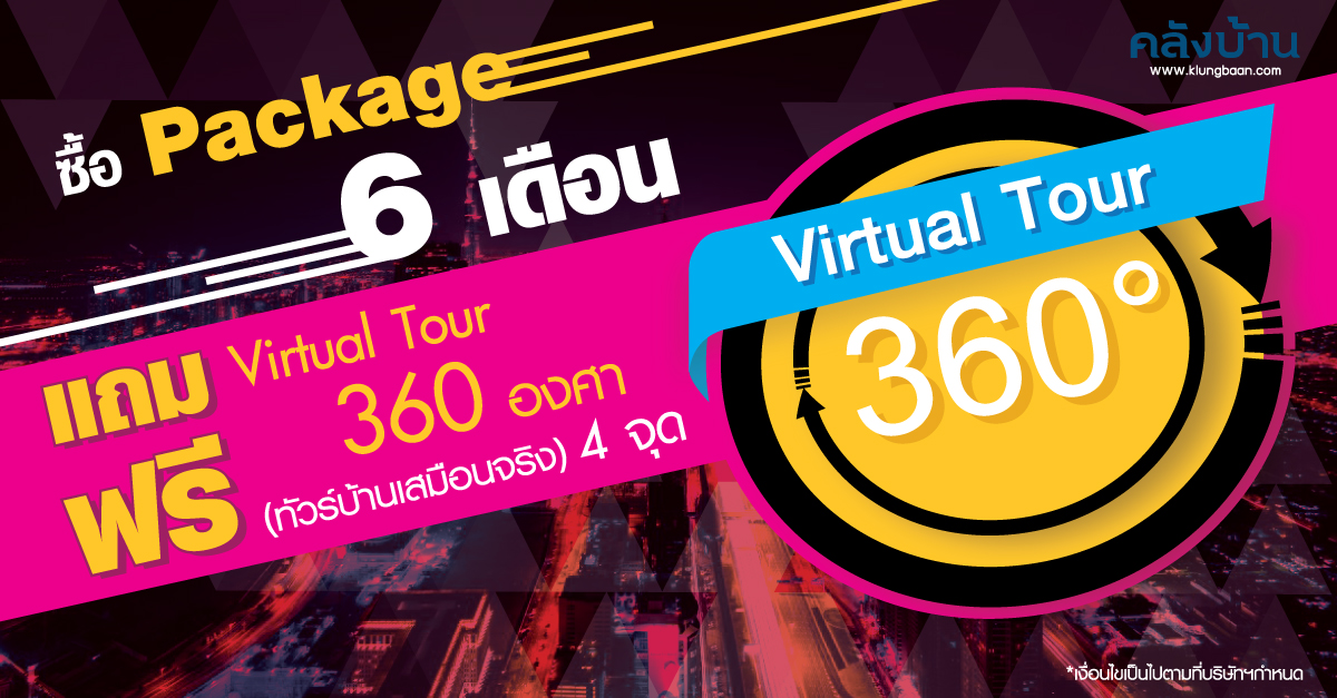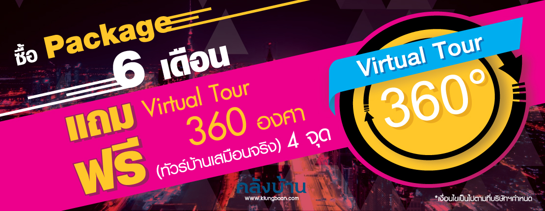 วันนี้ทีมงานบ้านดีมีข่าวดีมาบอกต่อ www.klungbaan.com ใจดี จัดโปรแรง แถมฟรีทันที เมื่อซื้อแพคเกจประกาศขายบ้านมือสอง 6 เดือน รับไปเลยของแถมสุดพิเศษ บริการถ่ายภาพ Virtual Tour 360 องศา พาทัวร์ชมบ้านเสมือนจริง ที่จะช่วยให้คุณขายบ้าน / คอนโด มือสองได้ง่ายมากขึ้น จะมีรายละเอียดอะไรบ้างนั้น ไปดูกันเลยค่ะ